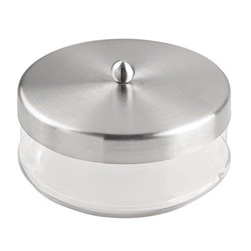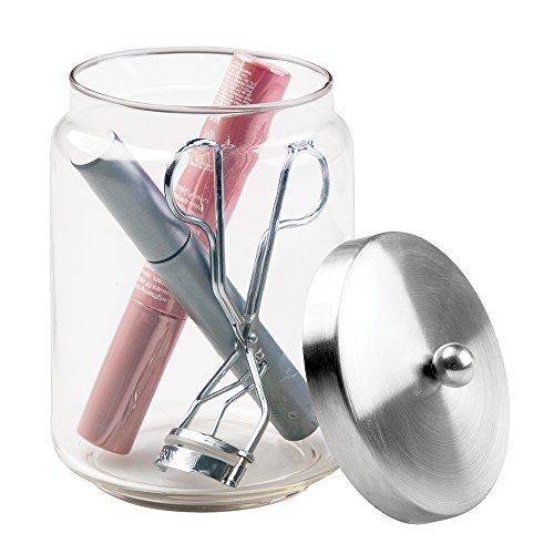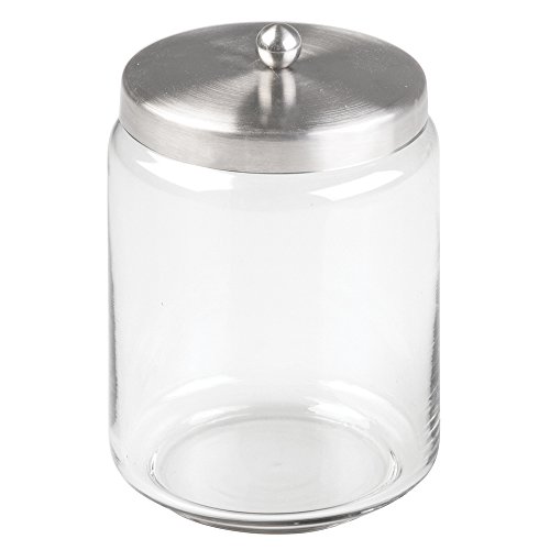 mDesign Bathroom Vanity Glass Apothecary Jars for Cotton Balls, Swabs, Cosmetic Pads - Set of 3, Clear/Brushed Stainless Steel