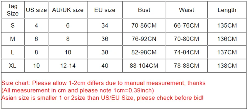 Note:Asian size is smaller 1 or 2size than US/EU Size