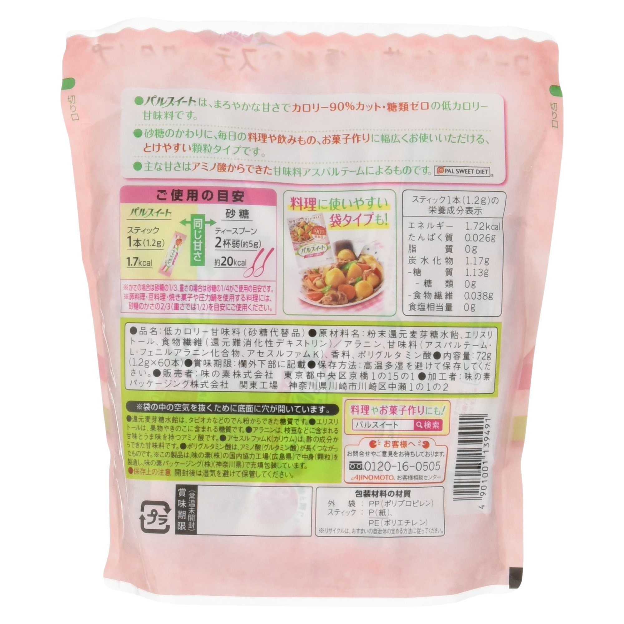 "Palsu" is a low-calorie sweetener with 90% calorie cut and zero sugar, mellow sweetness born from amino acids contained in vegetables and fruits.