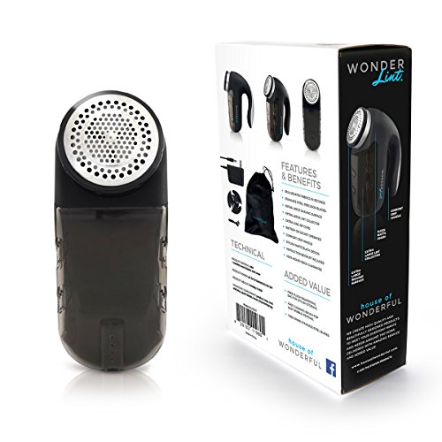 Product Description: You have found the most effective fabric shaver product in the market: The Wonder Lint by House of Wonderful. If you have clothes in the wardrobe or in storage that you don't wear because they look tired or old due to pills, lint, bobbles or fuzz then the Wonder Lint is for you, we offer outstanding value for money and wonderful customer service. When you compare our product to our competitors you will see why the Wonder Lint is the only choice for making your clothes, bedding or furniture look refreshed and like new again: Tokidoki Love: "This was even better than expected. Love that it also comes with extra set of blades, a case, and you can use with or without batteries. Works well so far and saved some sweaters I was going to throw out. Would definitely recommend!". "This shaver removed every pill I could see, and when I was done the sweaters looked brand new!" Dawn Barrier: "This fabric shaver exceeded my expectations. It is LARGE, so it can de-lint more fabric faster than a normal-sized fabric shaver. The lint catcher is also LARGE, so I don't have to stop and empty it often". Nicolette Sheridan: "Finally, a sweater shaver safe to use on delicate fabrics including your wool and cotton clothes. Easily remove pills and fuzz with each pass. When finished, emptying the lint compartment is easy. Can also be used on your furniture, blankets and rugs! Remove pills and lint from furniture with fabric. Product Material: ABS. Product Colour: Black. Product Power: AC (4*C# batteries) / DC 5W motor. Packaging components: Product, tray, cable & plug, spare blades, brush, drawstring bag.