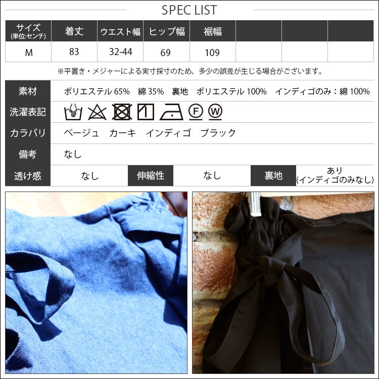 実寸:着丈 83cm ウエスト幅 32-44cm ヒップ幅 69cm 裾幅 109cm