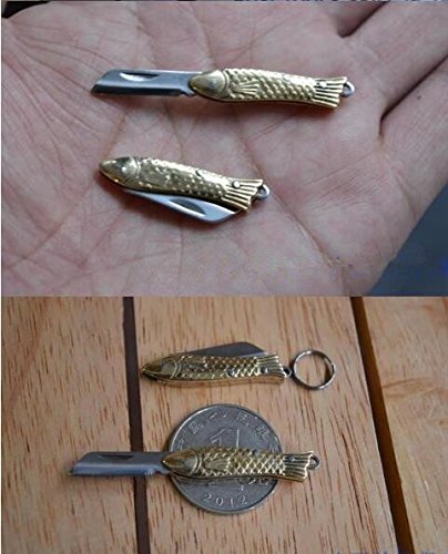 1pc Fish Mini Keyring Small Pocket Keychain Folding Folder Knife Brass (8 cm (open))