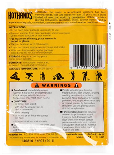 -. Feature : 3 warmers per pack / Up to 18 hours of heat per warmer / Air Activated / Safe, Natural heat / Larger size than standard hand warmer