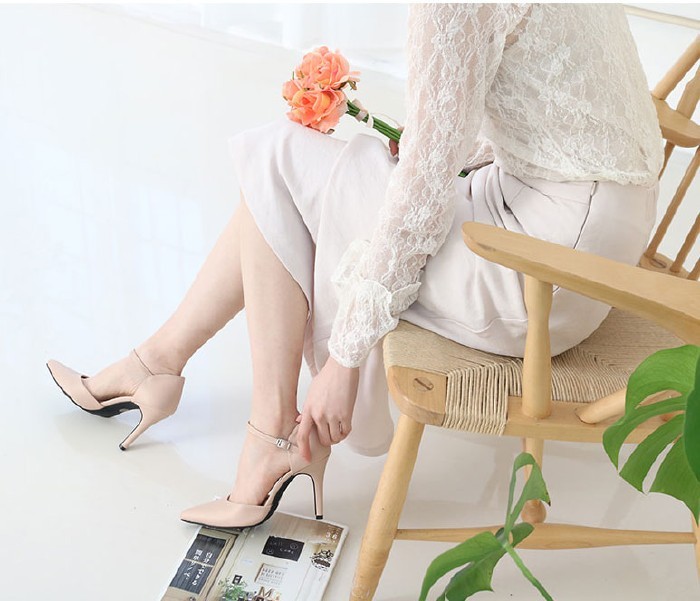 商品名:パンプス レディース ピンヒール アンクルストラップ サイドオープン 2018 春 ファッション 靴 婦人靴