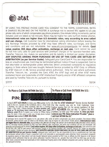 -. LegalDisclaimer : Please refer to the back of the card for the terms and conditions. Note that these cards are NOT for AT&T cellphone prepaid wireless loads.