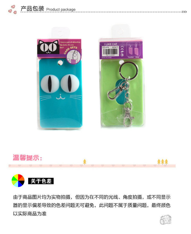 | Product Description | Tuyan kitty stereo card pack cute cartoon design, highlight your extraordinary taste for fashion. Engaging with high-grade stainless steel feel good, good texture, no distortion, no fade, can incorporate a variety of sensors of magnetic cards, membership cards, bus cards, student cards, very convenient, metal buckle design can be hung on the bag, do not worry lost perfect storage. Easy to travel to carry, you can put some temporary bills and the like, hanging in the bag, the bag is your lovely delicate and good partners. |