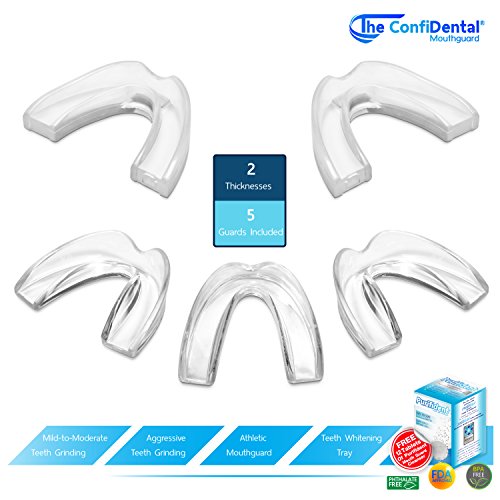 Studio : The ConfiDental Publisher : The ConfiDental Binding : Misc. Product Description The ConfiDental Dental Guard, Moldable Dental Protectors - Pack of 5 The ConfiDental Dental Guard is an excellent dental appliance made from high-quality premium dental grade materials. The guard is BPA-free and Phthalate-Free for added protection. Available in 3mm and 6mm thicknesses so that it can get used for multiple purposes. Our ConfiDental Dental Guards are ideal for teeth clenching, mild to moderate teeth grinding, aggressive teeth grinding, bruxism. Additionally, they can be used as athletic guard and teeth whitening tray. The ConfiDental Dental Guard is a superior product that offers users a variety of key benefits: - Teeth Protection - The ConfiDental Dental Guard, either in a 3mm or 6mm thicknesses and integrated design, absorbs and redistributes the force of an impact from teeth grinding and sporting activities, preventing damage to your teeth. - Customizable Fit - Made from a thermoplastic material, users can custom mold their guard for a perfect fit in the privacy of their home. - Maximum Comfort - The ConfiDental Dental Guard features a frenulum notch design that prevents irritation. - Tear Resistant and Durable - Easy to Clean and Reusable - Safe to Use - They are manufactured using BPA free and Phthalates free premium grade moldable material, for added safety and customer satisfaction. 12 Free Cleansing Tablets from Purifident: Protect Your Investment in the ConfiDental Dental Guard. Purifident Dental Appliance Cleansing and Deodorizing tablets are optimal for daily, effortless cleaning. Package Includes: - 3 pieces of 3mm thick ConfiDental Dental Guards - 2 pieces of 6mm thick ConfiDental Dental Guards - 6 cleansing tablets from Purifident - 1 Travel Hygiene Case - Step-by-step instructions for the molding and fitting process