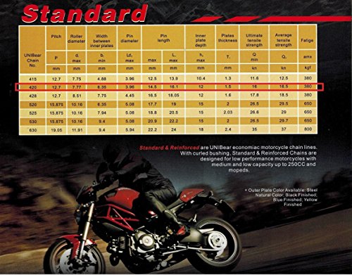 420 Motorcycle Chain 132-Link With 1 Connecting Link High Performance Natural
