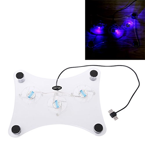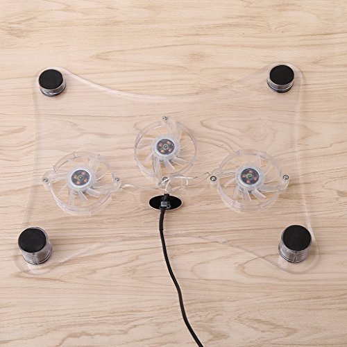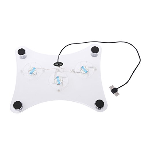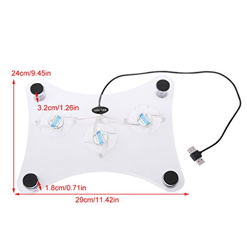 -. Feature : Size: 29×24×3.2cm/11.42×9.45×1.26in (Approx.) / With 3 electric fan, single use cool, feeling very cool / Super load bearing capacity, four transparent round foot / USB power supply can be convenient and easy to use, no power adapter needed / Compatible with PlayStation 2, PlayStation 3, Playstation 3 Slim, 12" notebook PC