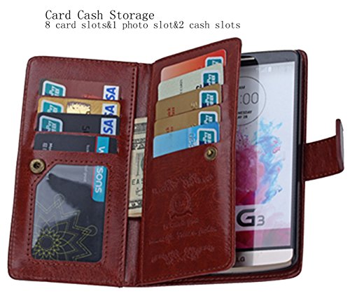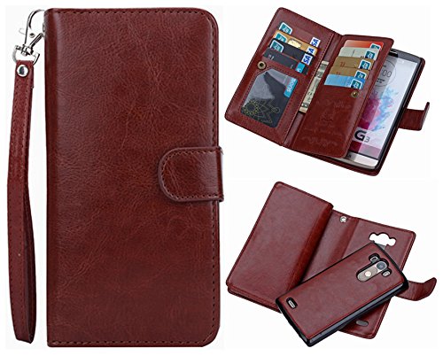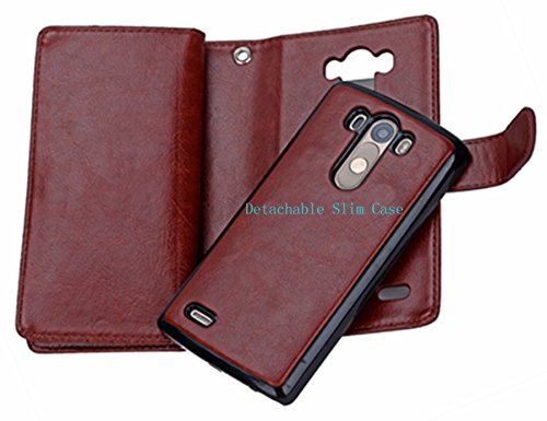 LG G3 2 in 1 Wallet Case,Hynice Folio Flip PU Leather Case Magnetic Detachable Slim Back Cover Card Holder Slot Wrist Strap wallet for LG G3. (brown)