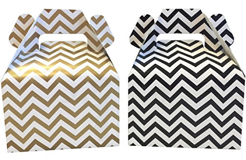 Paper Gable Favor Boxes - Black Gold White - Chevron - 24 Pack