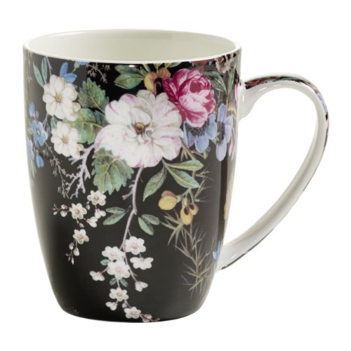 -. Feature : Becher dekoriert, Dekor: Midnight Blossom / florales Dekor mit edlem Glanz / Original-Motiv des britischen Textil-Designers William Kilburn / Material: Bone China (edles, hochwertiges Porzellan mit feinem Glanz) / spülmaschinengeeignet, ofenfest, mikrowellenfest, gefrierschranktauglich / in attraktiver Geschenkbox verpackt / Länge: 12 cm, Breite: 8,5 cm, Höhe: 10 cm, Füllvolumen: 390 ml, Gewicht: 220 g