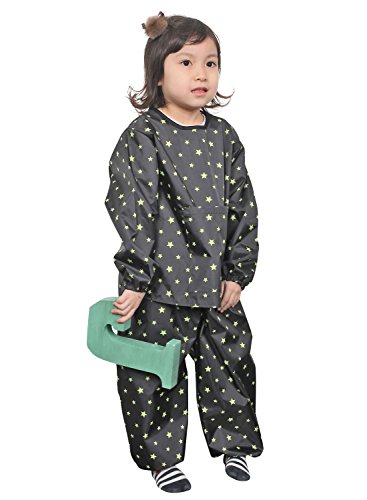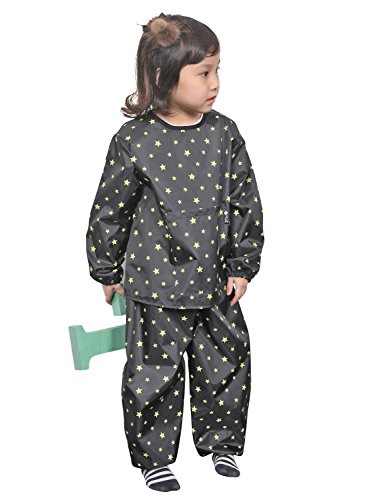 This smock is perfect for messy projects. The smock are perfect for an all over protection and with the waterproof material you can rest easy that you little ones clothes will stay clean. Two-piece for the ultimate in clothing protection. Features a large catch all pocket for holding art supplies and catching spills. Shoulder velcro. Sized to fit 2 to 6 years of age.Feature