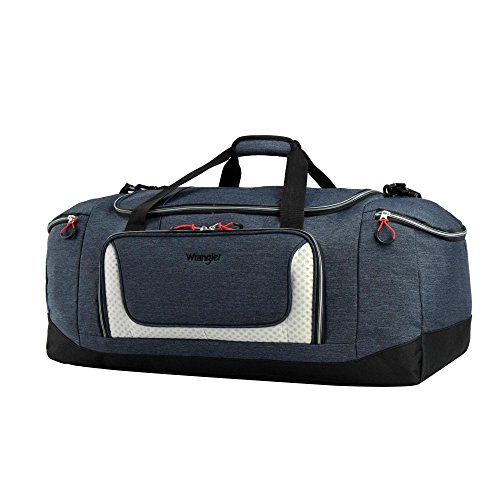 Product Description Wrangler's brand of western heritage has represented American freedom and courageous individuality since 1947. Loaded with features including a lightweight and durable fabric, padded handle, and multi-zippered accessory pockets, this duffel is fit for any one who enjoys a casual, rugged and eye-catching look. 0