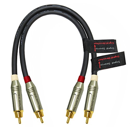 1 Foot RCA Cable Pair - Made with Mogami 2534, Neglex Star Quad, High-Definition Audio Interconnect Cable and Amphenol ACPR - Die-Cast Body, Gold RCA Connectors – Directional design for best results