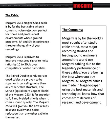 Professionals and audiophiles have trusted Mogami for generations. All Mogami cables are made in Japan and these cables are a result of generations of extensive research and development by this world-renowned manufacturer. Simply compare the performance with cables that are priced at 10 - 50 times the value of this cable and you will not be disappointed. Mogami is the world's #1 professional studio cable brand.