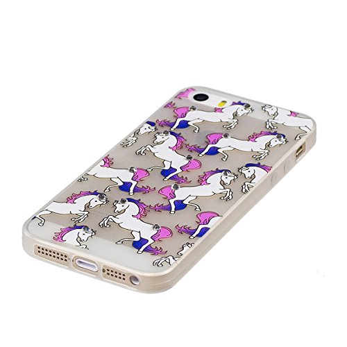 iPhone 5S Case,iPhone SE Case, Ukayfe Luminous Noctilucent Glow in the Dark Crystal Diamond Bling Glitter Clear Bumper TPU Soft Case Rubber Silicone Skin Cover For iPhone 5S- Cute Unicorn