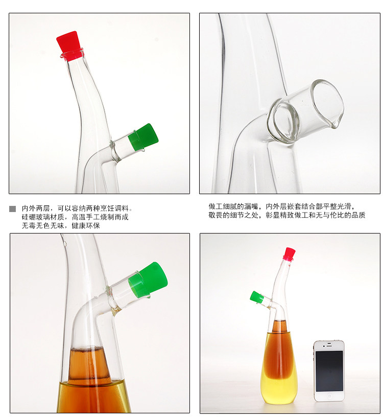 [Lotus.w] a bottle of dual-use, can install two kinds of liquid, high borosilicate glass (non-toxic tasteless, no pollution to food) artificial blowing, make your kitchen more creative.