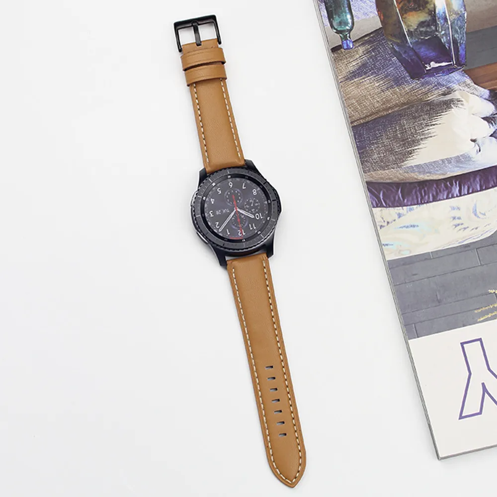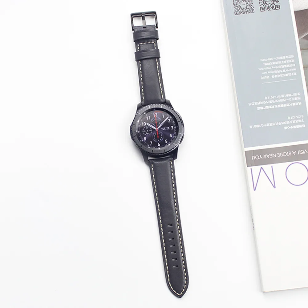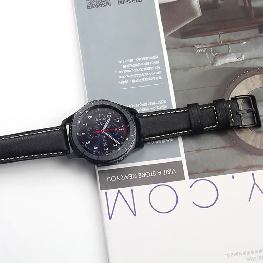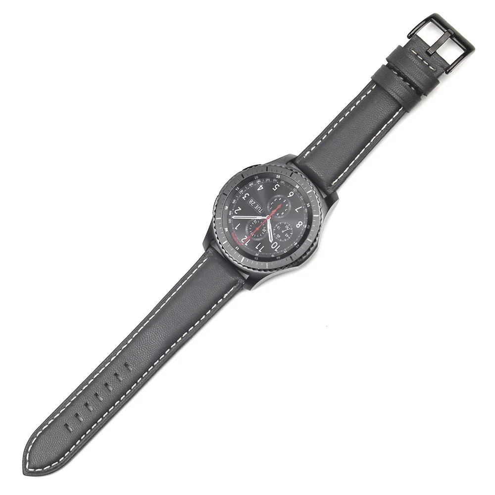 | [해외]럭셔리 시계 밴드 가죽 시계 팔찌 스트랩 밴드 삼성 기어 S3 프론티어/클래식 시계 스트랩 블랙 |