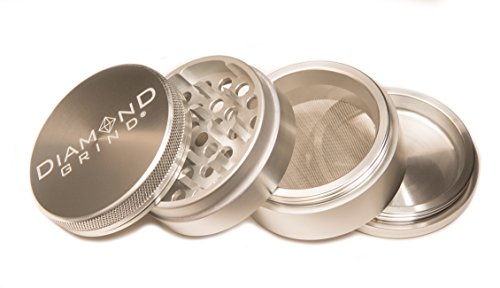 Diamond Grind 4 Piece Aluminum Herb Grinder with screen 56mm (2.25") SILVER