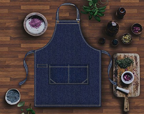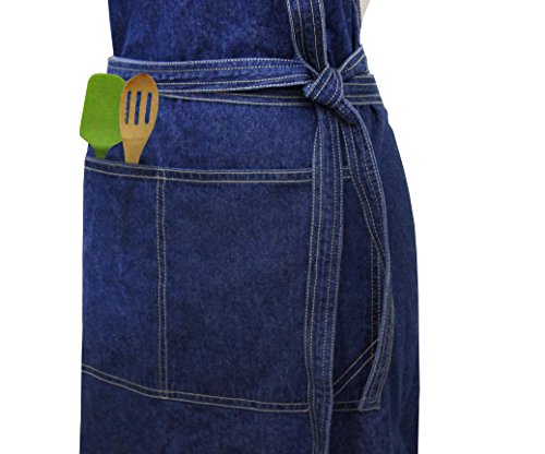 Milano Home Denim Professional Apron for Men & Women with Adjustable Neck Towel Holder & Patch Pockets Perfect for Cooking BBQ Baking Full in Length (Light Denim)