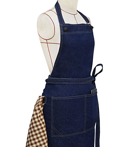 - Adjustable neck with metal buttons and buckle for your convenience, we've provided extra long ties so it doesn't matter if you're slim or husky the apron will fit, patch pockets to store your phone and kitchen utensils so that everything you need is within reach, plus a towel holder!