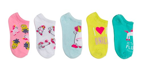 -. Feature : Despicable Me 3 Minion Fluffy the Unicorn 5 Pk no Show Socks / Fits Girls Sock Size 6-8.5 / Fits Girls Shoe Size 7.5-3.5 / Ages 4-7 / Machine Washable