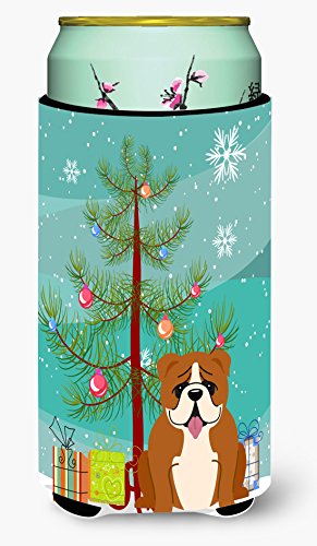 Caroline's Treasures Merry Christmas Tree English Bulldog Red White Tall Boy Beverage Insulator Hugger BB4245TBC, Multicolor