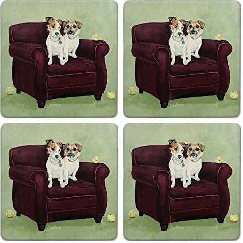 CoasterStone Absorbent Coasters, Parson Russell Terriers (Set of 4), 4-1/4", Multicolor