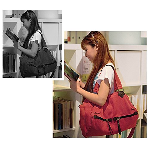 CARRY ALL OF YOUR ESSENTIALS with our fashionable, canvas material double top handle satchel bag