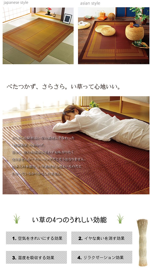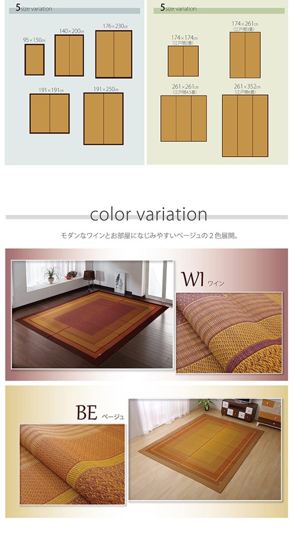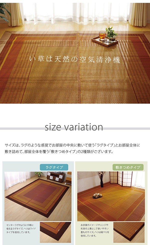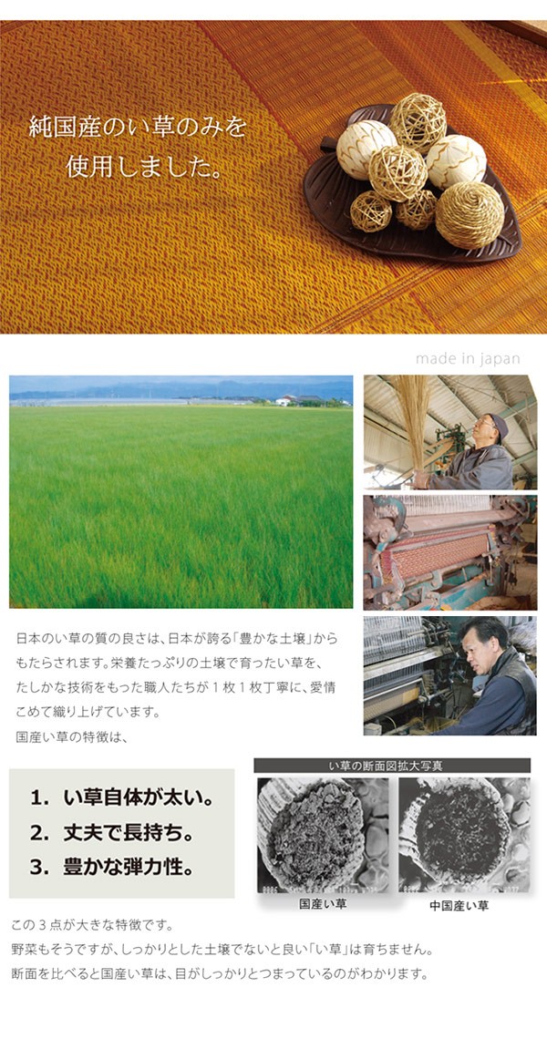 表地=い草(九州産) ※紋織 裏地=不織布 ヘリ=綿100%