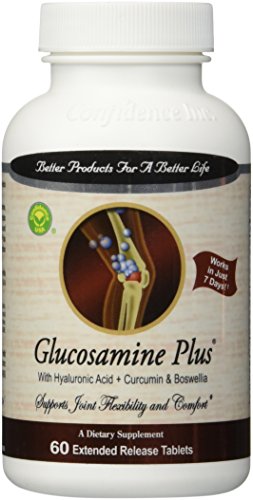 -. Binding : Health and Beauty -. Brand : Confidence -. EAN : 0892483001069 -. Feature : Precursor for cartilage tissue synthesis. Scientific evidence sests glucosamine may help to maintain normal articular cartilage. / A "flex-factor" for joints. Chondroitin sulfate is a glycosaminoglycan that plays in important structural role in joint tissue.. / Major component of synovial fluid and helps maintain ease of joint movement and comfort. -. IsAdultProduct : 0 -. Label : Confidence Inc. -. Manufacturer : Confidence Inc. -. PackageQuantity : 60 -. ProductGroup : Health and Beauty -. ProductTypeName : HEALTH_PERSONAL_CARE -. Publisher : Confidence Inc. -. Studio : Confidence Inc. -. Title : Glucosamine Plus 60 extended release tablets -. UPC : 892483001069