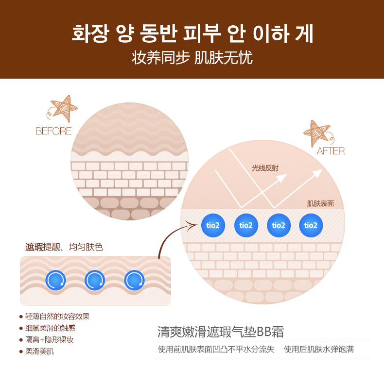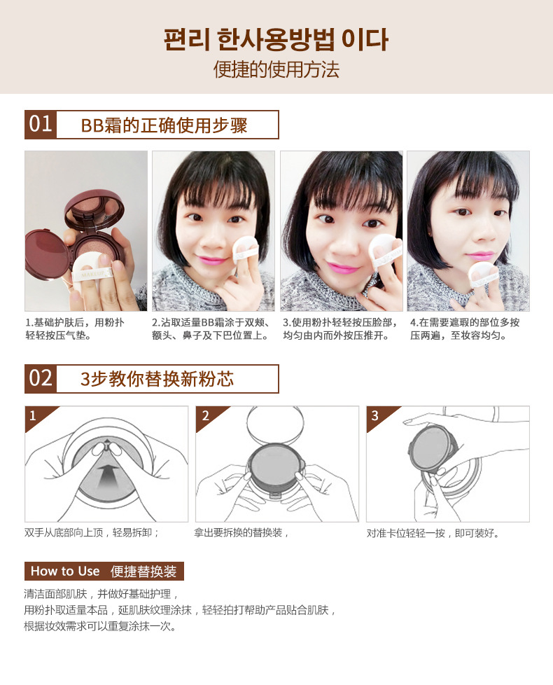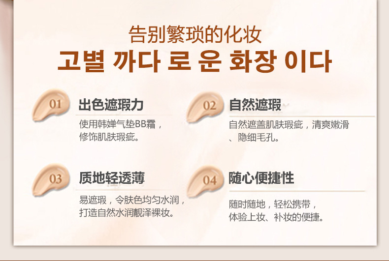 Efficacy: to help the skin concealer moisturizing, uniform color, mention beautiful skin, so delicate skin soft, easy to have a natural makeup.