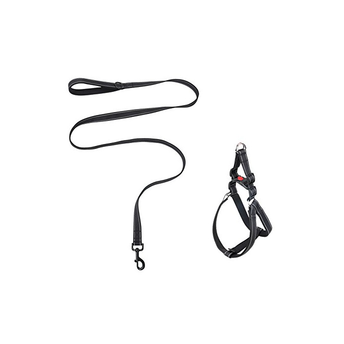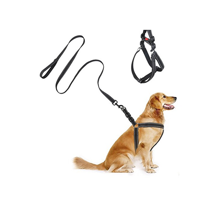 Leeko 개 하네스 리드 세트 몸통 돌아가 잡아끌어 방지 나일론제 반사 재료 산보중 형개 대형견 L사이즈 블랙