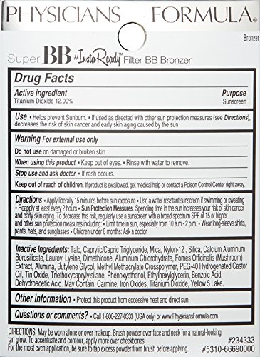 SunkissedGlow: Ultra-lightweight, multicolored bronzer delivers a multi-dimensional glow that captures, diffuses and softens the reflection of light on your skin for the ultimate sun kissed glow. Velvety-soft texture instantly melts into skin, rebalancing it with dial-sphere particles that absorb oil but not moisture, creating a smooth, skin-perfecting radiant tan glow. Complexion is instantly selfie-ready. Featuring InstaFilter Technology, a proprietary blend of mattifying and pore balancing spherical beads, color filter pigments and high-tech polymers that work together to instantly optimize light reflection, blur imperfections and visibly retexturize skin, while protecting against UVA/UVB damage with SPF 30.Feature