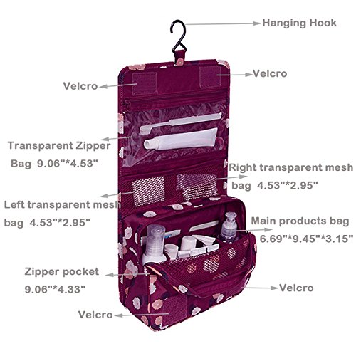 Tancendes Waterproof Travel Bag Makeup bag Cosmetic Bag Travel Kit Organizer Bathroom Storage Cosmetic Bag Carry Case Toiletry Bag Multifunctional Pouch Hanging toiletry bag Polka Dot Red