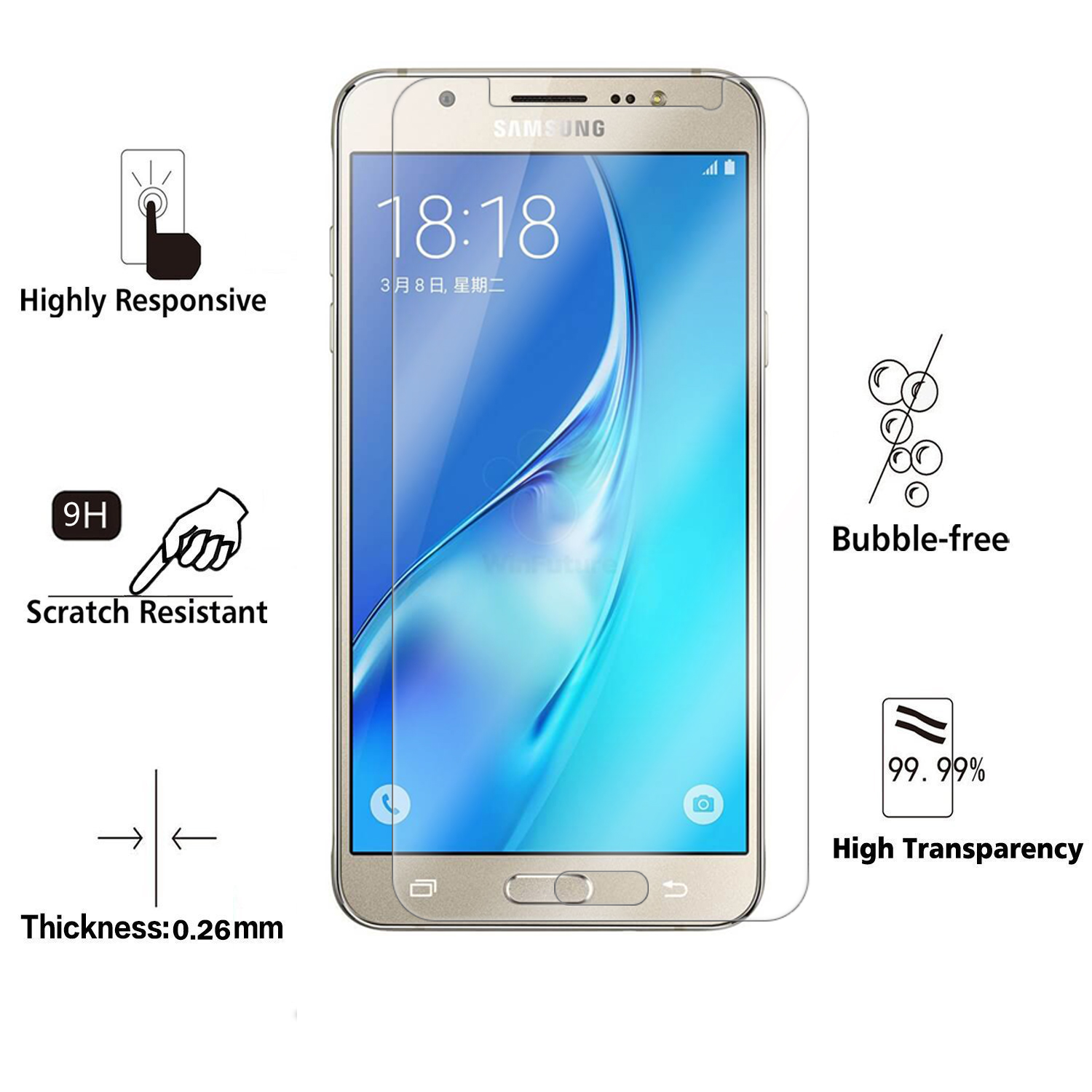 2.5D 0.26mm 9H Premium Tempered Glass Screen Protector For Samsung GALAXY J7 2016 J710 J710F J710M Toughened protective film