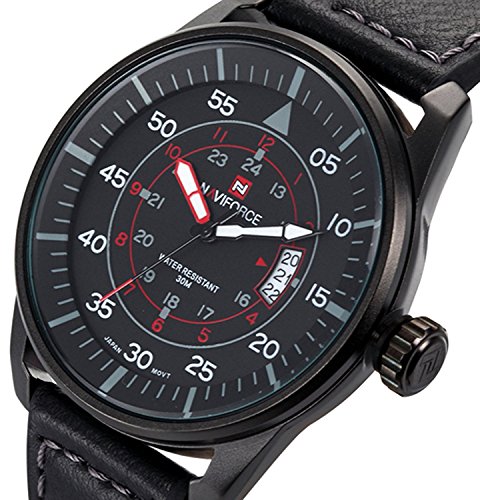 파인 드 타임 naviforce 맨즈 손목시계 《후숀》 손목시계 맨즈 레더 밴드 아날로그 패션 밀리터리