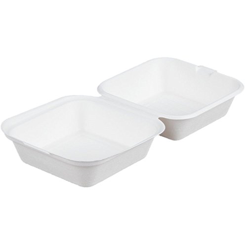 Take Out Boxes Clamshell Hinged Biodegradable To Go Food Containers - 6"x6" in. 125 Count. - White - by California Containers