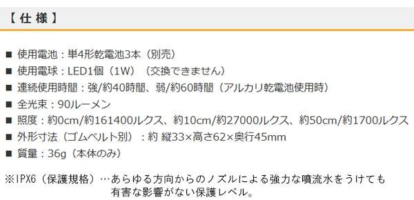 fk094igrjs強点灯・弱点灯・赤白点滅の3WAY点灯!!角度調節もできてIPX6(※)の対暴噴流仕様なので、様々な場所での作業に適しています滑り止めシリコンバンド使用!!サイズ個装サイズ:13×18×4cm重量個装重量:103g製造国中国角度調節機能付き!!3WAY点灯のヘッドライト強点灯・弱点灯・赤白点滅の3WAY点灯!!角度調節もできてIPX6(※)の対暴噴流仕様なので、様々な場所での作業に適しています滑り止めシリコンバンド使用!!