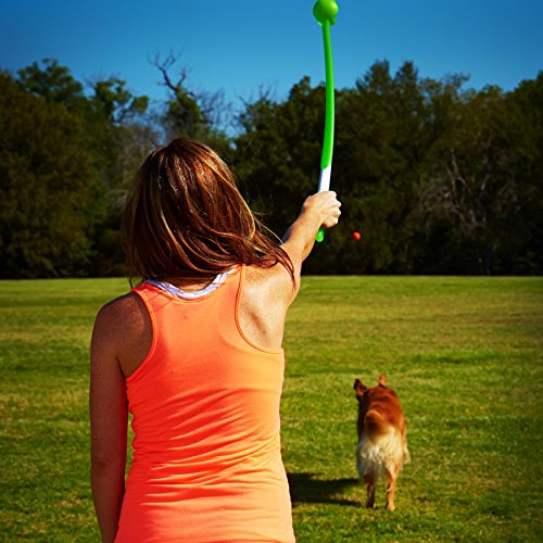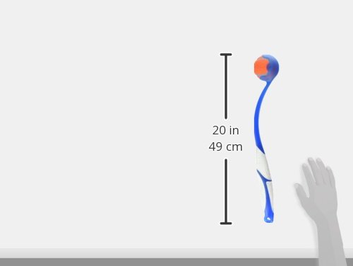 -. Feature : Choose from available sizes / Lightweight plastic / Rubber handle for comfort and grip / Throws tennis balls up to 3 times farther / Great for a game of fetch