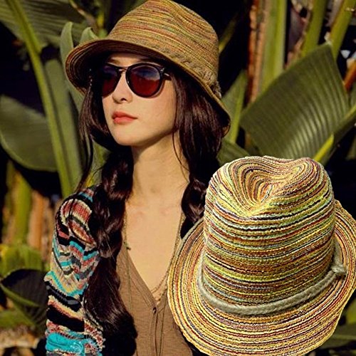 (Okdeals)/Accessories/Hats/DIRECT FROM USA/Women Bohemia Wide Brim Roll-up Crocheted Straw Hat Beach Sun Visor Cap for Travel