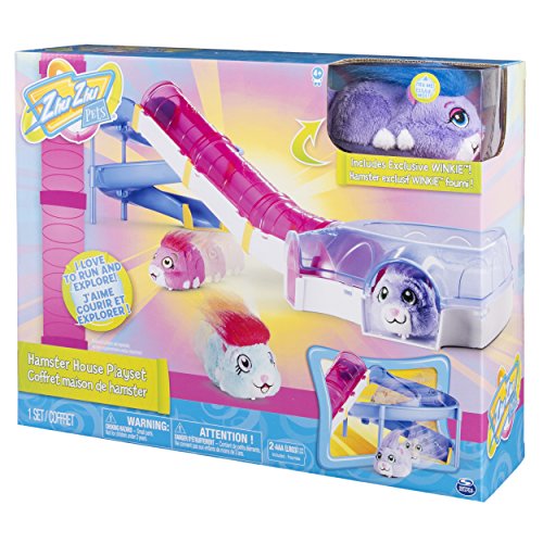 Look at that Zhu go! The Zhu Zhu Pets Hamster House Play Set is the perfect place for your Zhu to zhip, zhlide and zhoom! This little slice of hamster heaven comes with an exclusive and adorable Winkie hamster. Winkie loves to be inside his tube house! The only thing he loves more is using his tunnel and slide. Watch as he runs up the Hamster House tunnel, then scurries down the spiral slide. There’s room for more than just Winkie inside the hamster house. Collect other Zhus (sold separately) and team them up with Winkie for a hamster house party!Feature