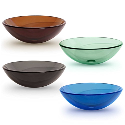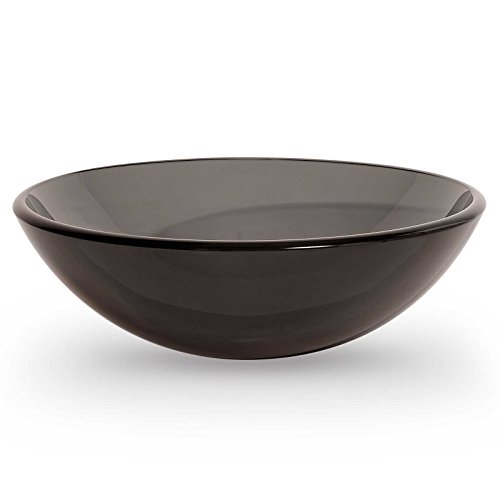 Tempered Glass Vessel Bathroom Vanity Sink Round Bowl, Gray Color
