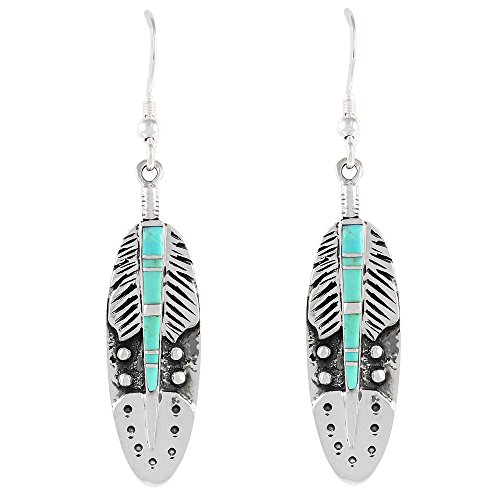 Impressive feather earrings in 925 Sterling Silver and genuine gemstones. Amazing craftsmanship. About 1.25" tall (see ruler image).NOTE: Due to the nature of these gemstones, variations in colors/shades and minor imperfections are normal. Our turquoise has been stabilized, treated, and color-enhanced for beauty and durability. Satisfaction always guaranteed.