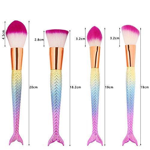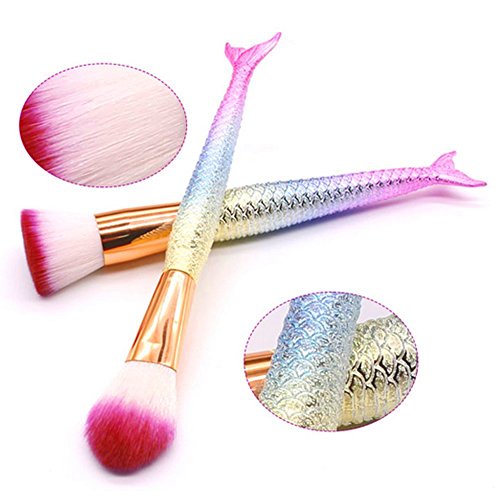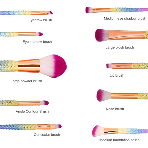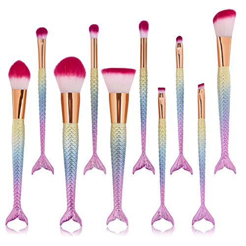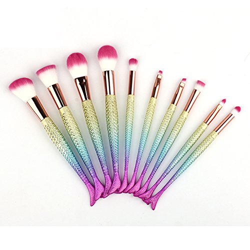 JUN_L 10pcs/set 3D Rainbow Mermaid Makeup Brush Set Synthetic Kabuki Foundation Blending Blush Eyeliner Face Powder Brush Makeup Brush Kit Beauty Cosmetic Tools