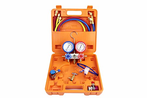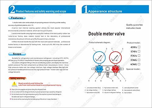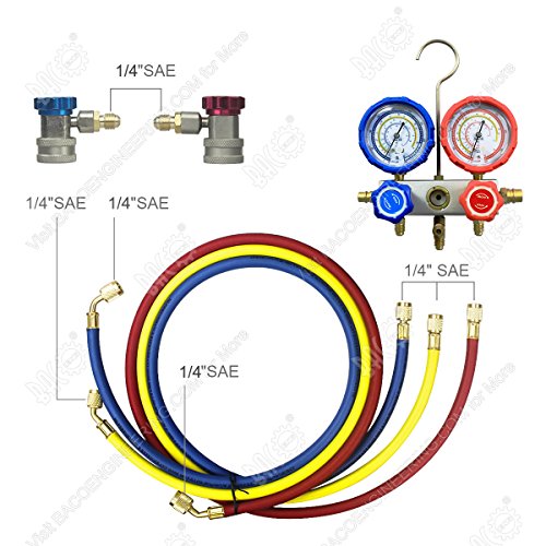 Accessory--3 × 4FT Blue Red Yellow Refrigrant Hose,2 × Adjustable Quick Fitting, 1 × Toolkit, 12oz Vacuum Oil, 1 × Manual for Pump and Gauge