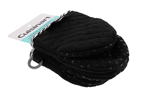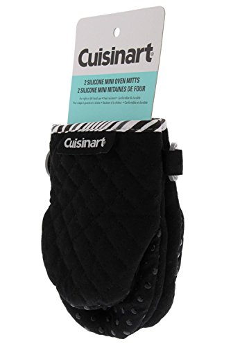 Cuisinart Quilted Mini Oven Mitts w/Silicone for Easy Gripping, Heat Resistant up to 500 degrees F, Black- 2pk