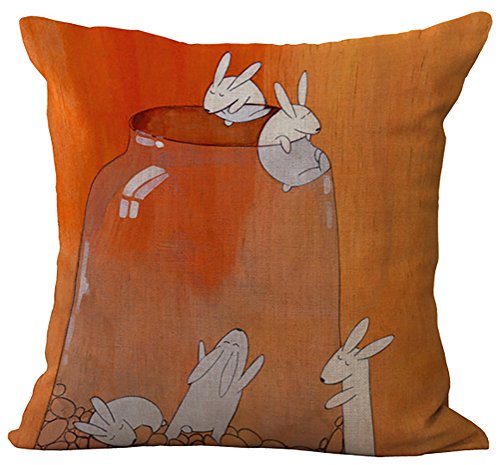 Rabbit Throw Pillow Cover Sham Cushion Slipover ChezMax Cotton Linen Pillowslip Square Pillowcase For Women Teen Girl Yoga Dance