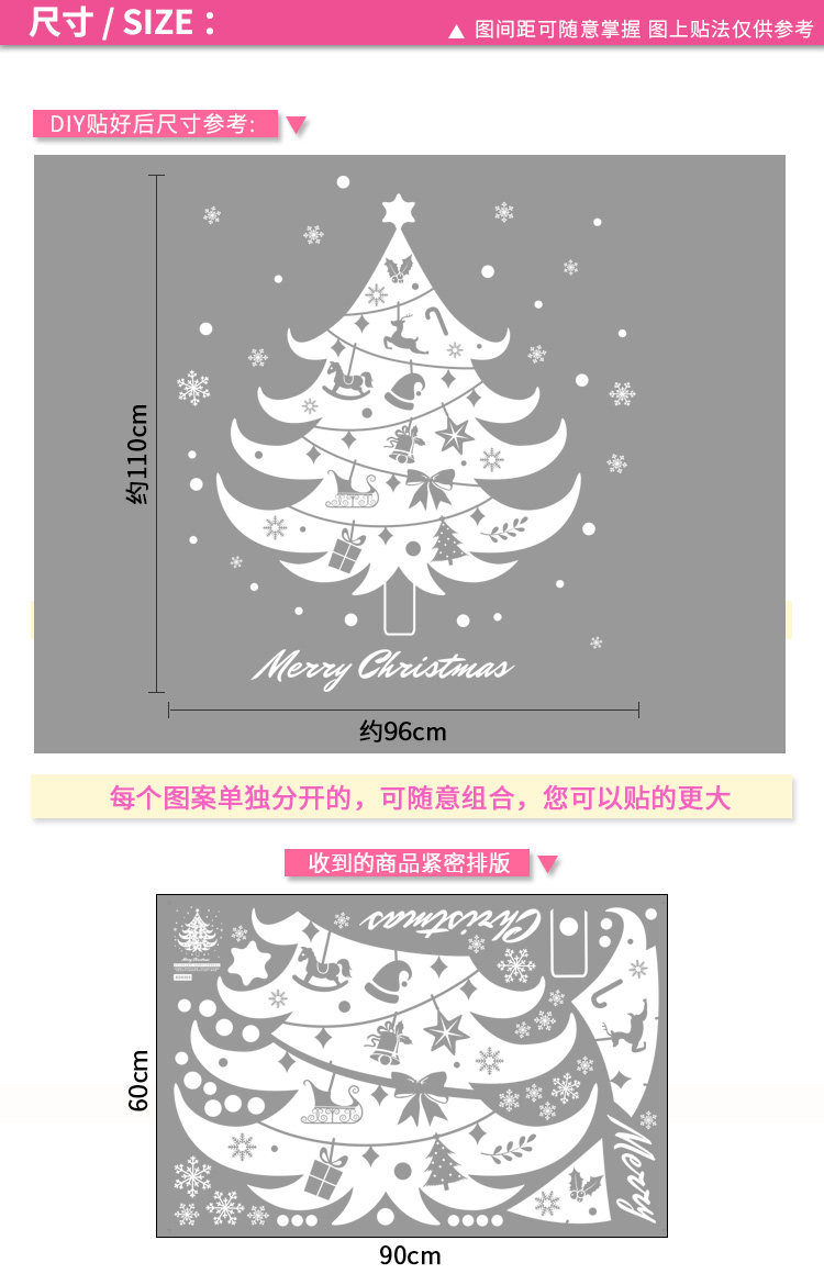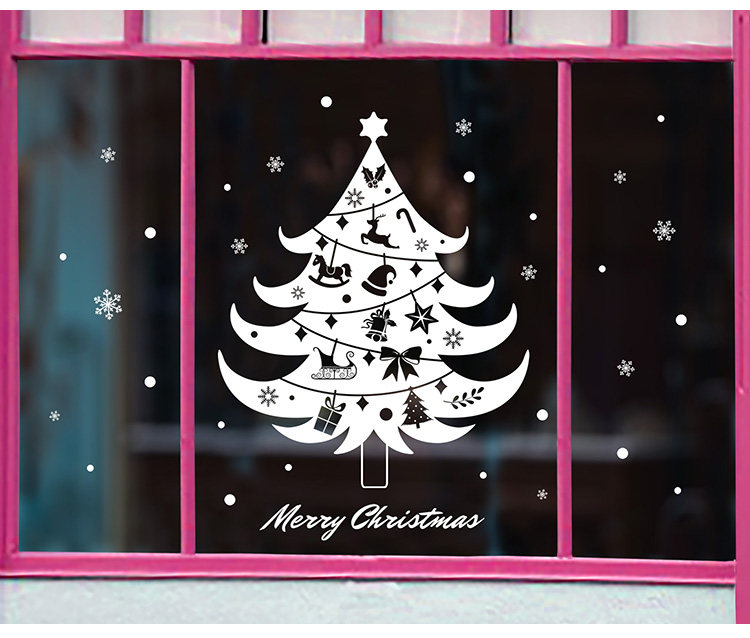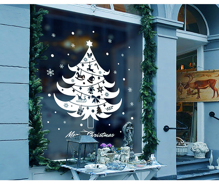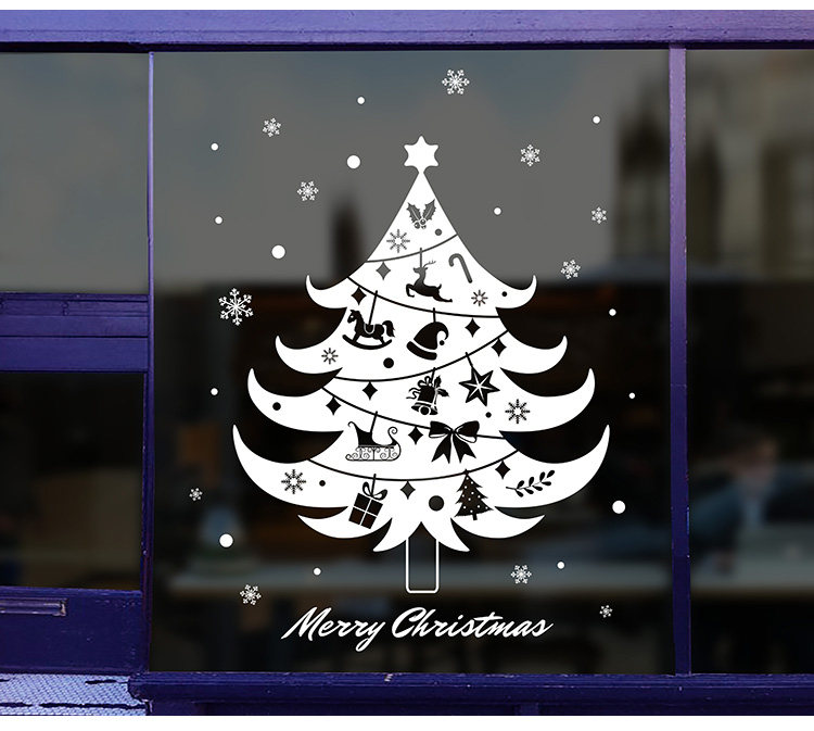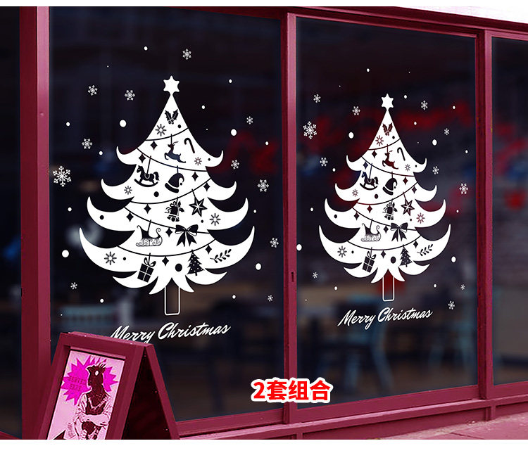 商场店铺橱窗户玻璃墙纸贴画墙贴新年圣诞节日雪花圣诞树窗花贴纸